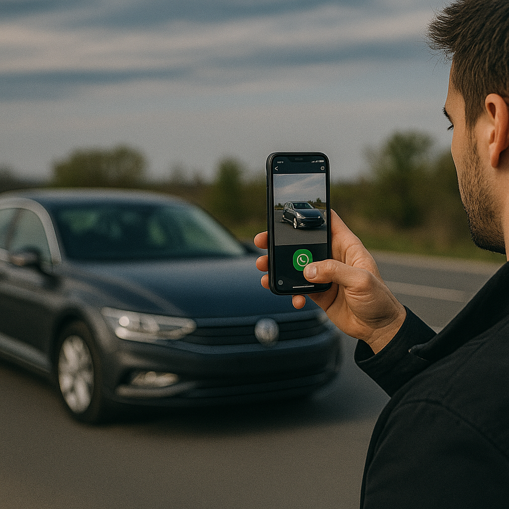 Per Klick kommst du sofort zu unserem Whatsapp Chat. Sende uns Modell, Baujahr, Kilometer und Fotos – unser Experte meldet sich umgehend. Anfragen sind 24/7 möglich. Wir kaufen dein Auto rasch und ohne viel Aufwand
